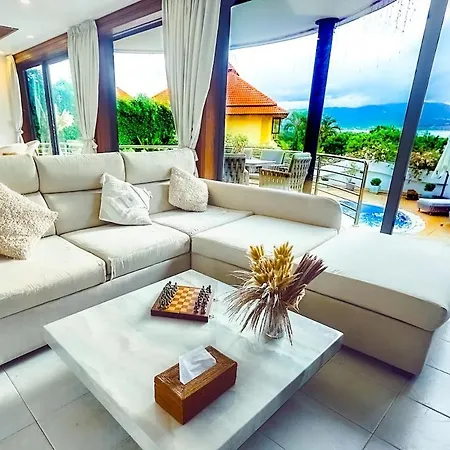 La Seaview Private Pool Beacfront Villa, 4Br Koh Samui se encuentra a 6 km del Lago Chaweng e invita a los huéspedes a disfrutar de un patio.